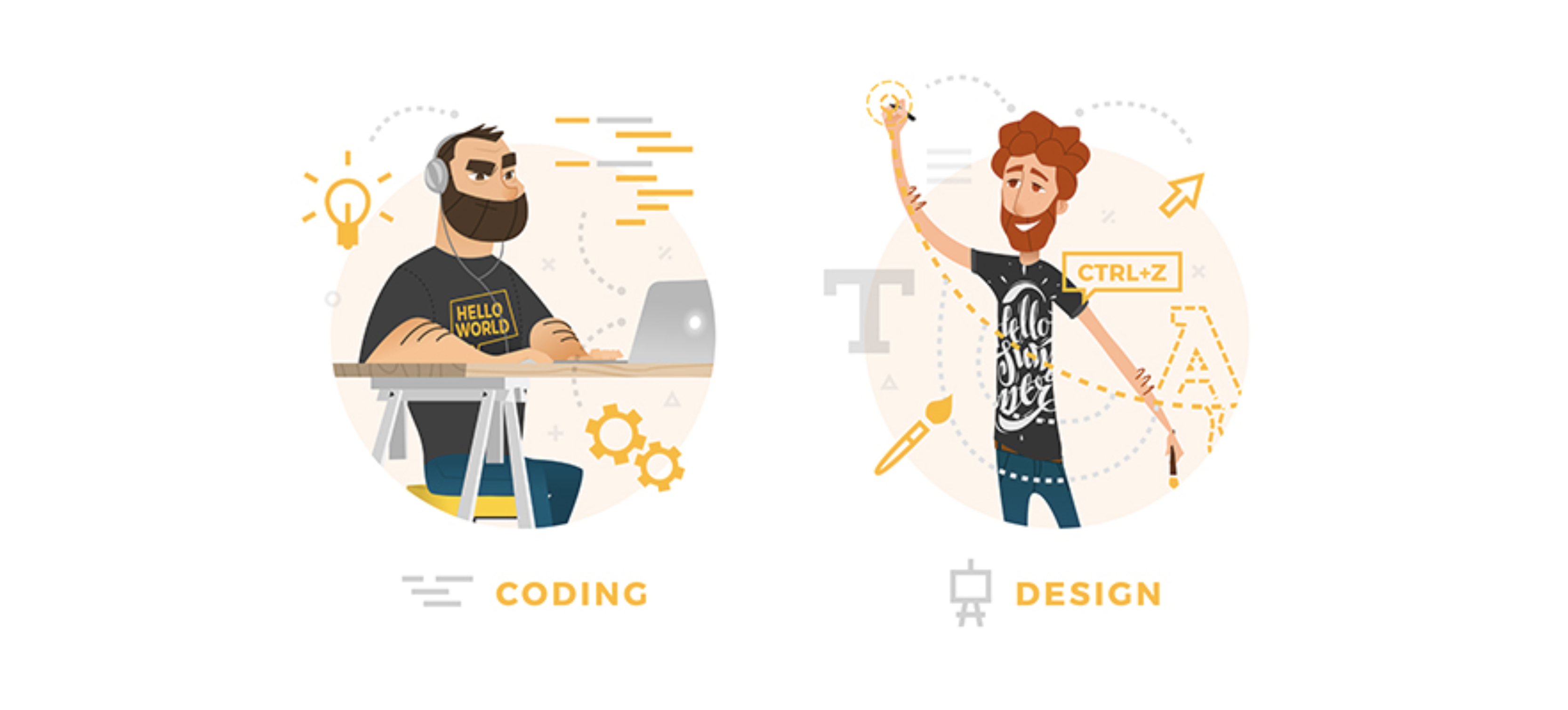 In general If we compare our performance with vacuum cleaning then developer vacuum cleans accurately centimeter after centimeter and never comes back to the place that has been cleaned. As for the designer he does it chaotically drawing a big picture first and then getting busy with details.