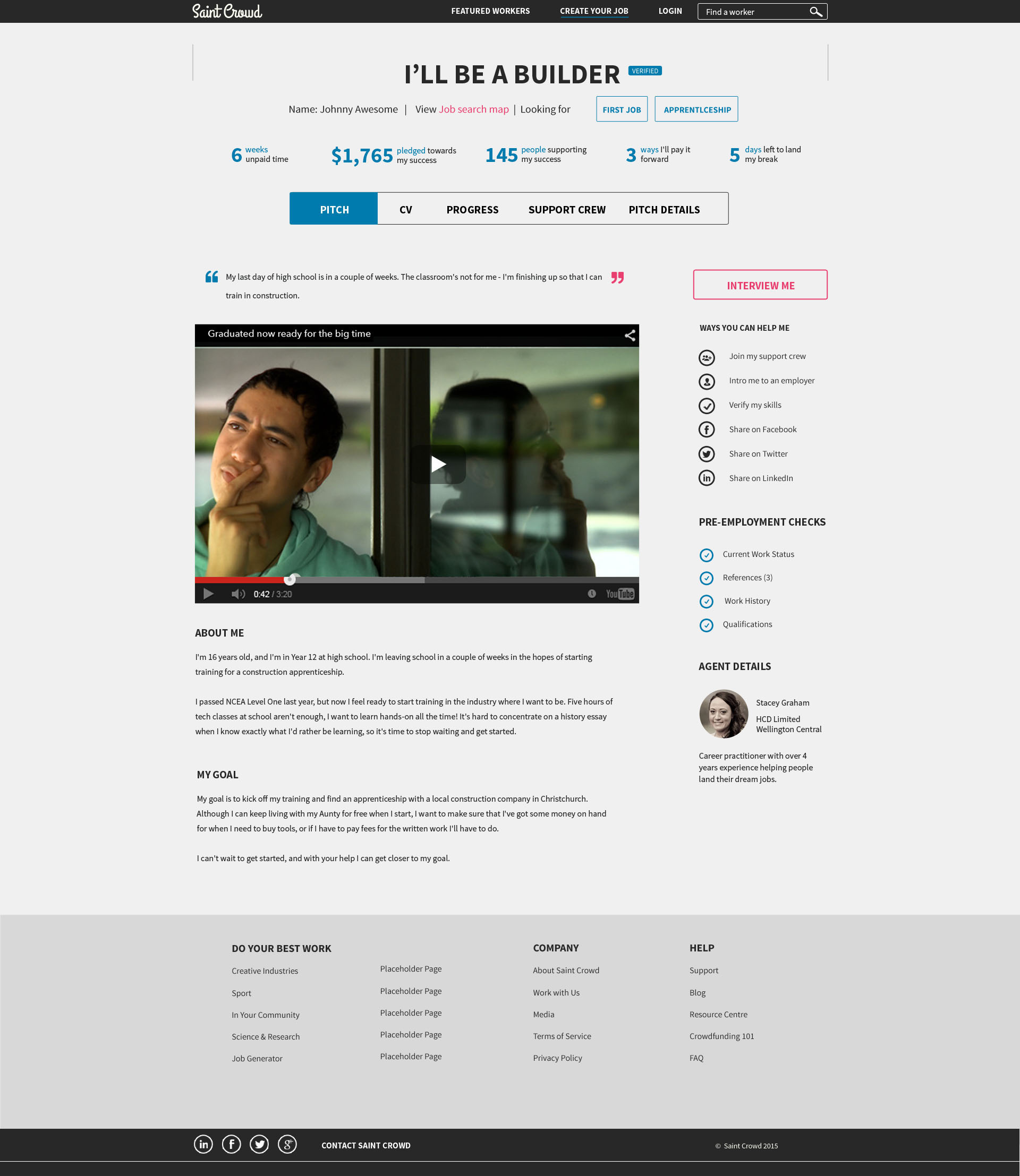 Saint Crown is an employment-based crowd-funding platform which helps to connect employers and employees through their network.